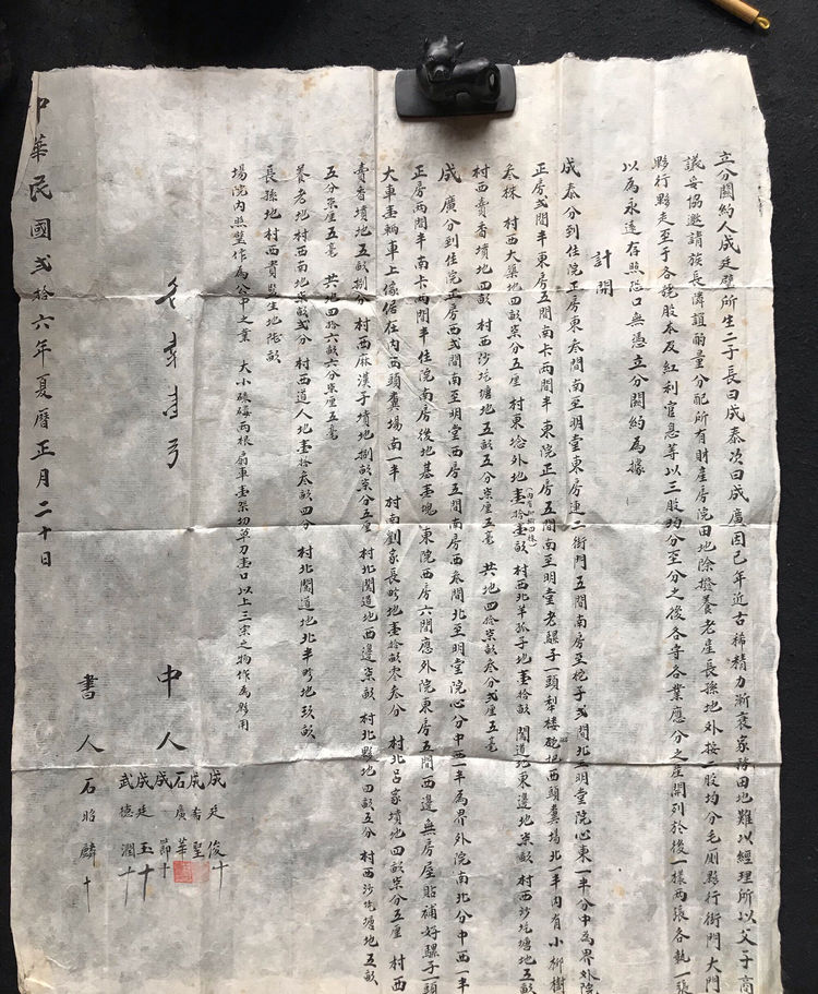 民國(guó)二十六年,另外一份分家契約誕生了: