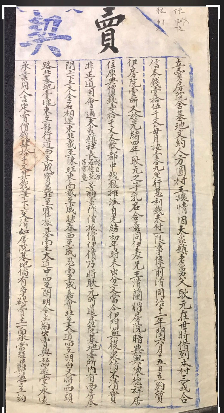 詒遠(yuǎn)堂曾祖父文林郎成畹購房契約